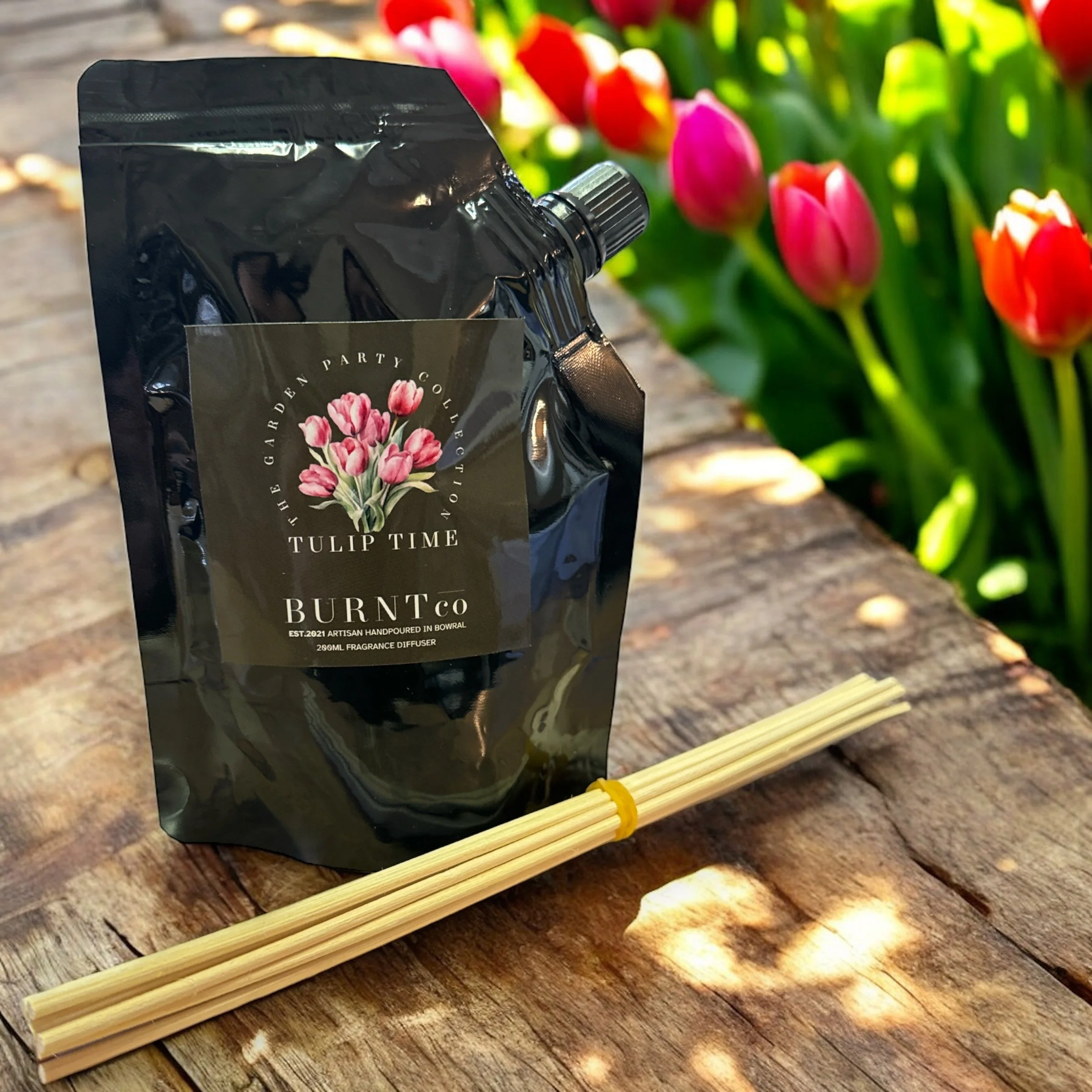 Now you can buy the 200ml Refill Liquid Pouch for your Burntco Diffuser Glass and new reeds!
